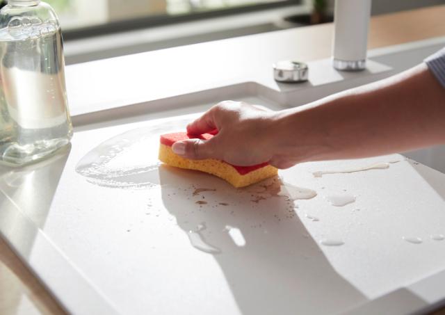 Rengør vasken med den bløde side af svampen ved hjælp af cirkulære bevægelser.