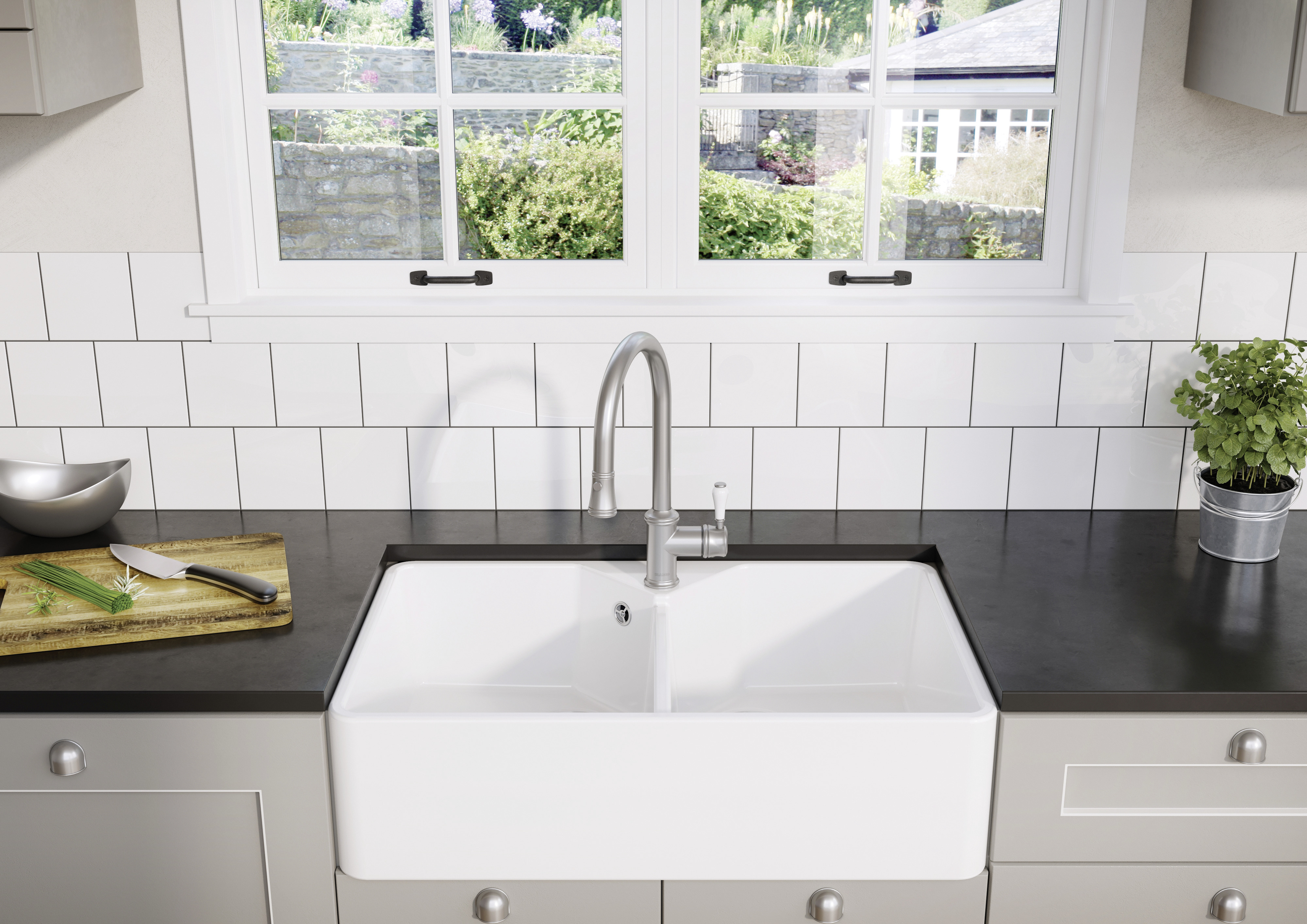 Keramisk porcelæn giver et stilbevidst og autentisk udtryk til køkkenet. Materialet har en tidløs elegance og en flot finish, der klæder både moderne og mere romantiske indretninger. Det er et kvalitetsmateriale, der uden problemer klarer daglig brug.