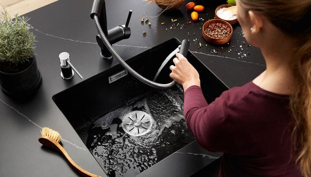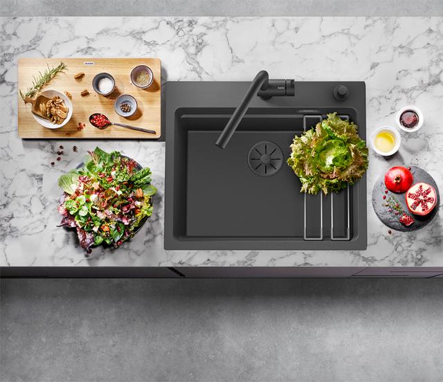 Køkkenarmaturet bliver hurtigt køkkenets centrum og valg af både funktion og farve er vigtigt når der skal vælges nyt. Med BLANCOs store udvalg af materailer og overflader er det muligt både at skabe flotte farvematches og spændende kontraster.