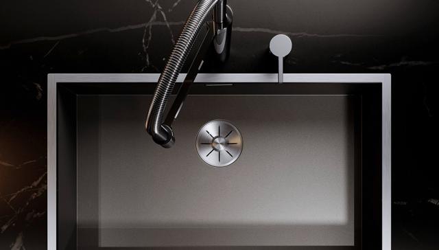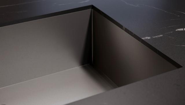 BLANCO Dark Steel er et stålmateriale, der er behandlet og indfarvet, så stålet får en mørk og dybgrå farve og en særlig og smuk struktur, der samtidig skjuler mindre ridser i vasken.