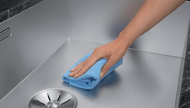 Til grundig rengøring og til at fjerne kalk fra vaskens overflade anvendes BLANCO DailyClean+.