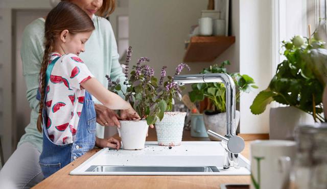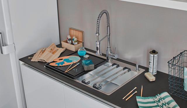 Arbejder du fx meget med planter eller hjemmedyrkede grøntsager fra baghaven, kan det være rart med en sidebakke på vasken, så du ikke har pottemuld og jord ud over hele bordpladen.