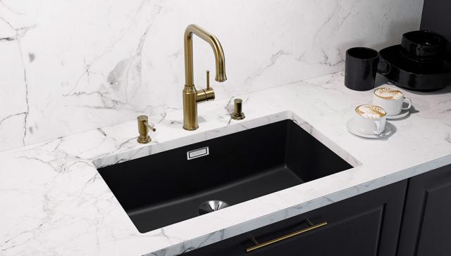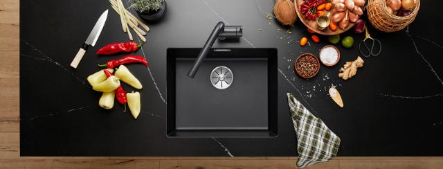 Giv dit køkken intensitet med den seneste tilføjelse til BLANCOs palette af Silgranit-farver. Sort er en klassisk trend i indretningen, der aldrig går af mode.
