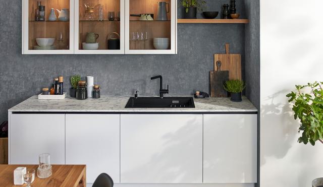 Indretningsmulighederne er nærmest utallige med den iøjnefaldende farve, hvad enten du bruger den sorte vask som køkkenets centrale element eller lader den gå i ét med en smuk, sort bordplade. Sort er kommet for at blive, og bringer rummets elementer sammen i en elegant enhed.