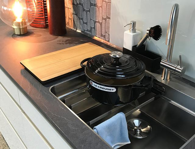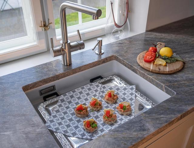 Når du ikke har brug for skinnerne i køkkenvasken, kan de også bruges som bordskånere på middagsbordet.
