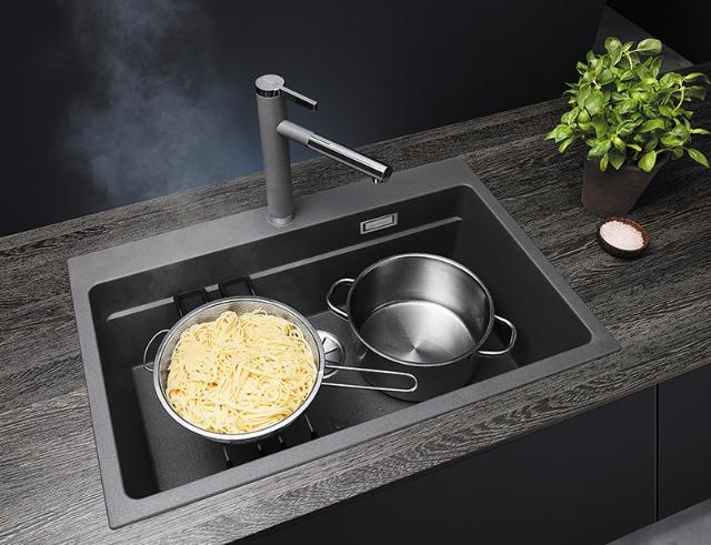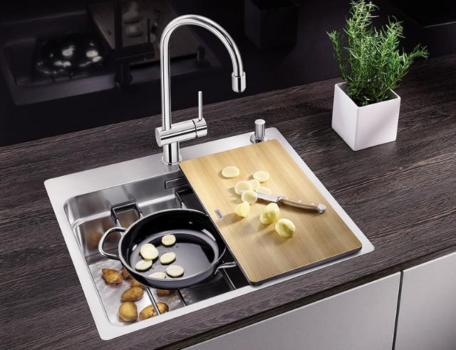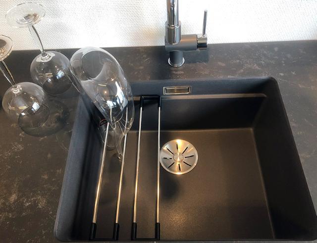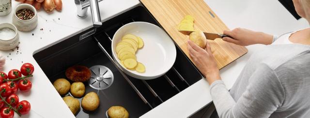 BLANCO ETAGON-vask er det perfekte valg i et mindre køkken, eller hvis I arbejder mange på samme tid i køkkenet. Køkkenvasken fungerer nemlig som en ideel ekstra arbejdsplads takket være de funktionelle skinner, der følger med når du køber vasken.