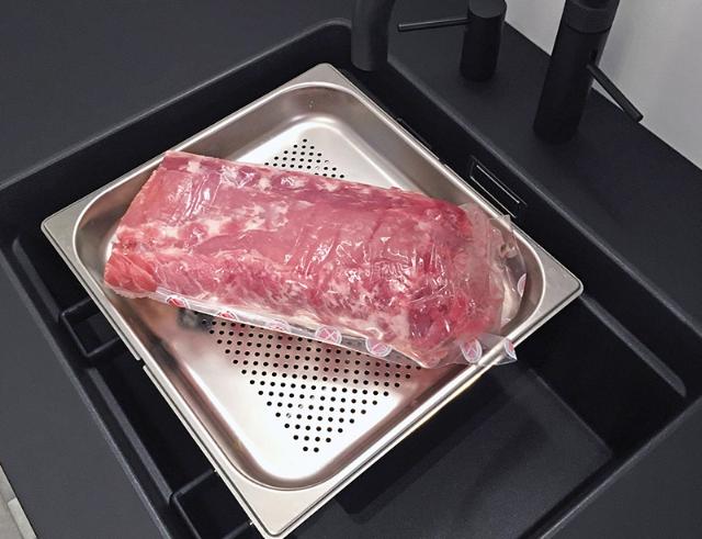 Optø kød eller andre frostvarer direkte over vasken. På den måde slipper du for, at kødsaften løber ud på bordet.
