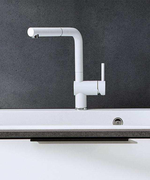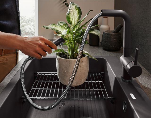 Til de store vaskekummer er det en rigtig god idé at vælge et armatur med udtræksslange, så det er let at komme rundt i alle hjørner, når vasken skal gøres ren, når grøntsagerne skal skylles og når der skal fyldes vand i gryder m.v. LINUS-S armaturet er et klassisk valg, der passer til alle køkkenindretninger og findes i et utal af farver og materialer.